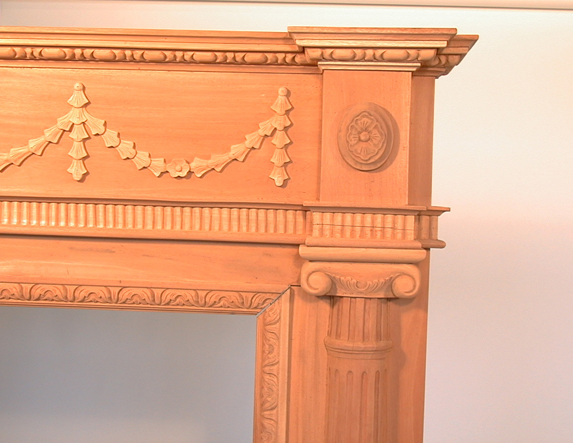 carvings that are present on the lower mantel. Please click on image to